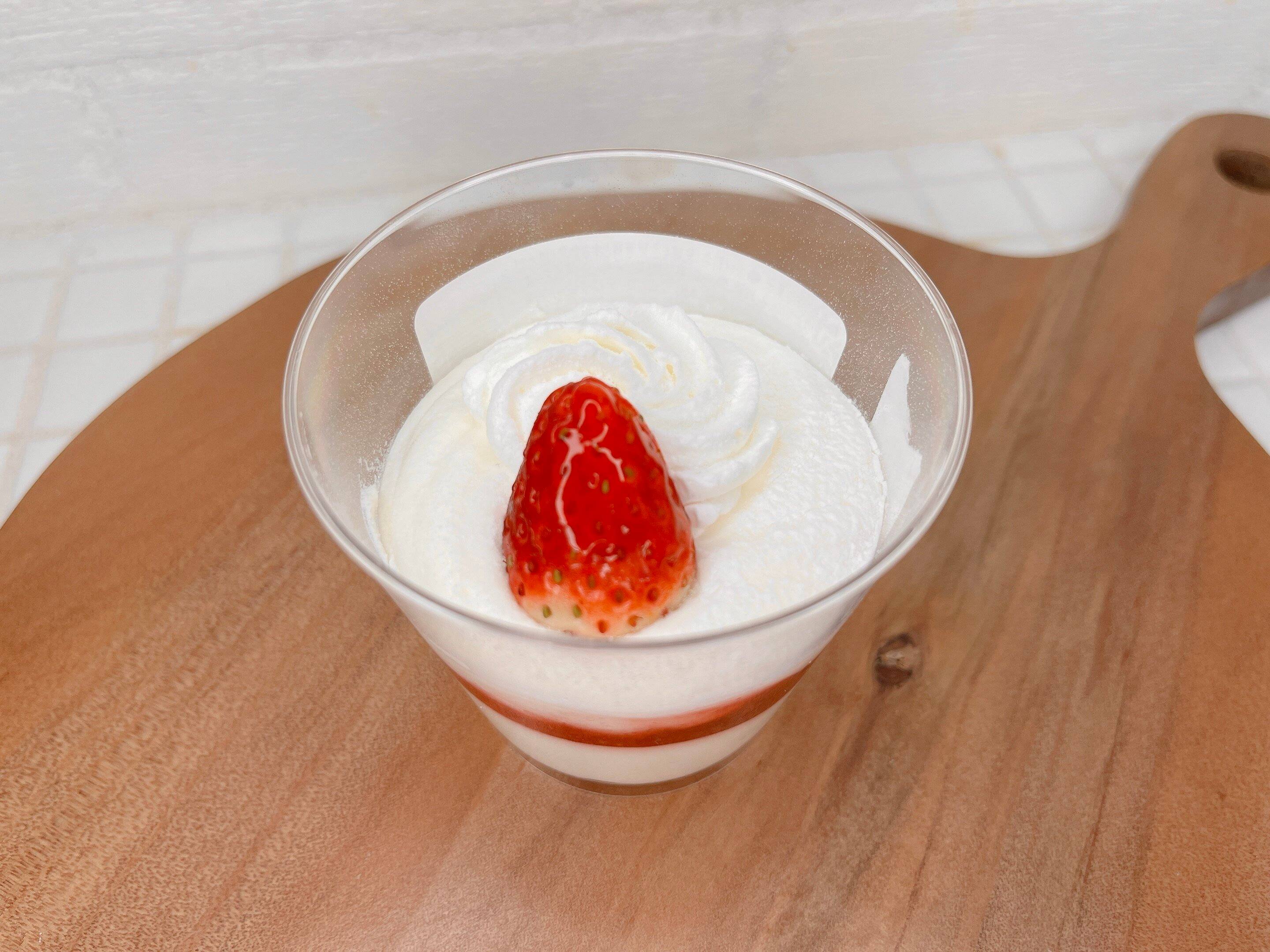苺がのっていて、3層になっているビジュアルはまるでショートケーキ!!苺とクリームの色合いが可愛いです。