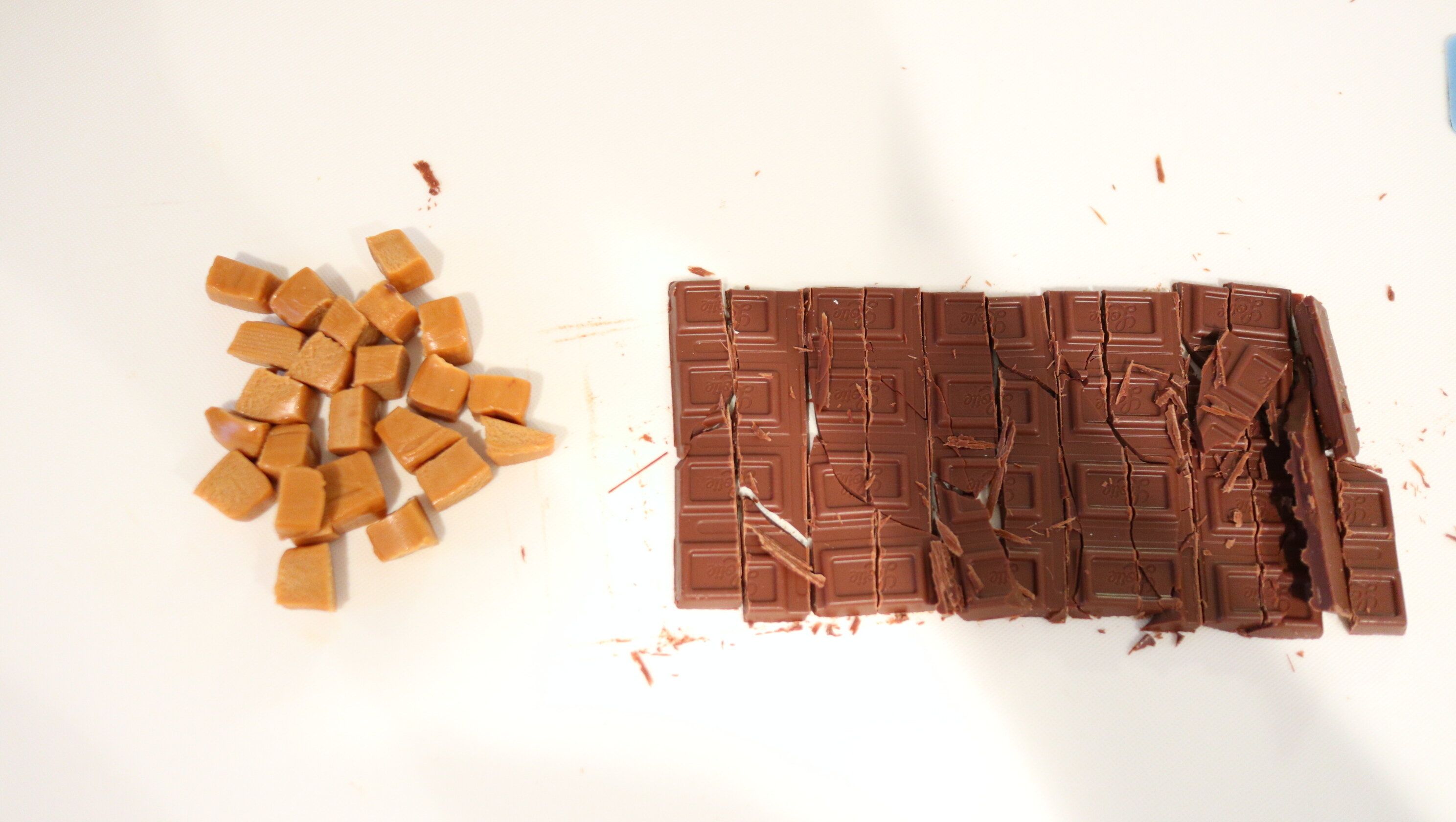 キャラメル・板チョコも細かく刻んで用意しておきます。(チョコレートはよく冷やしておくと切りやすい!)