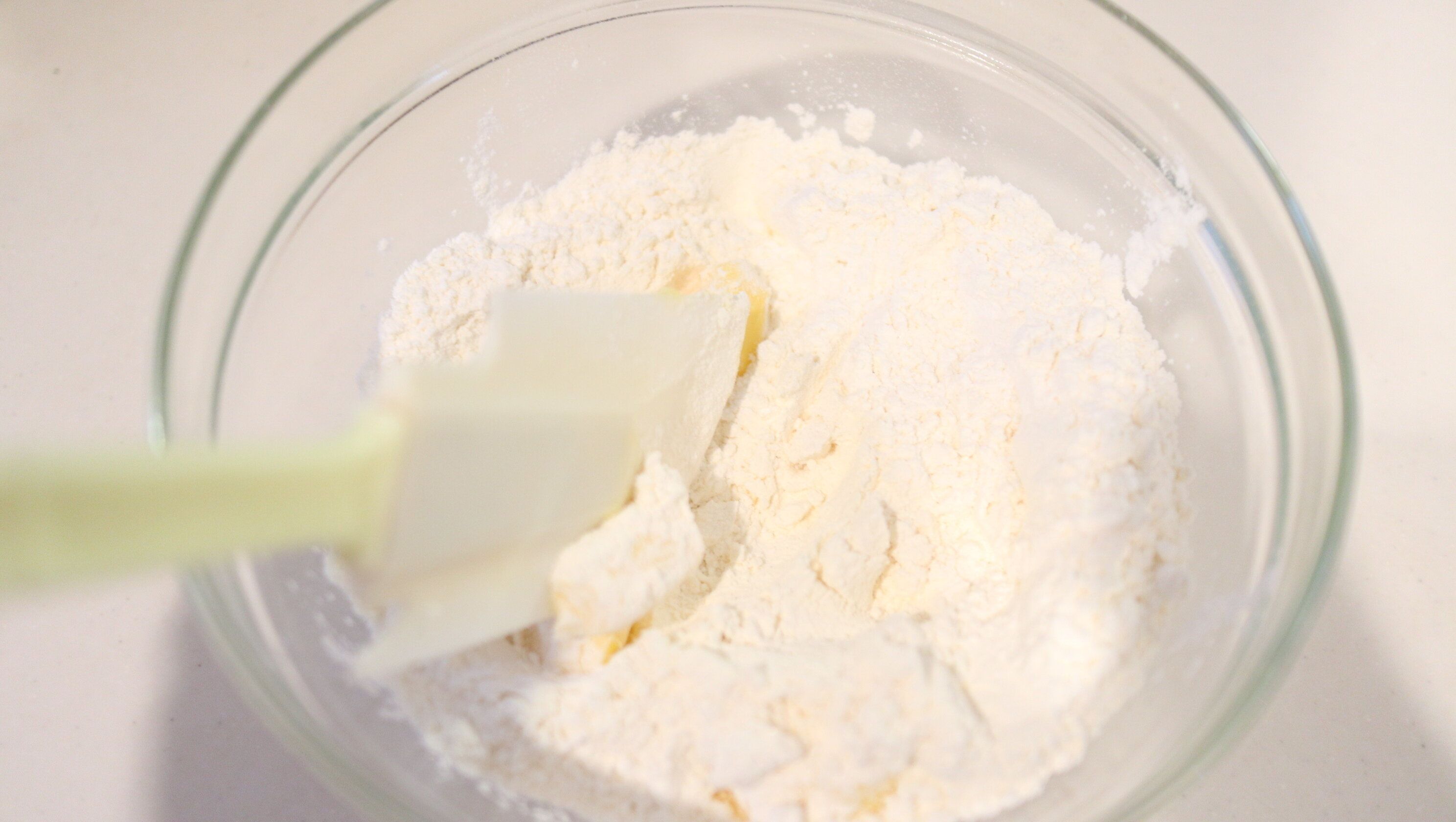 切るように混ぜ合わせていくと、だんだんと生地がポロポロと細かい塊になっていきます。