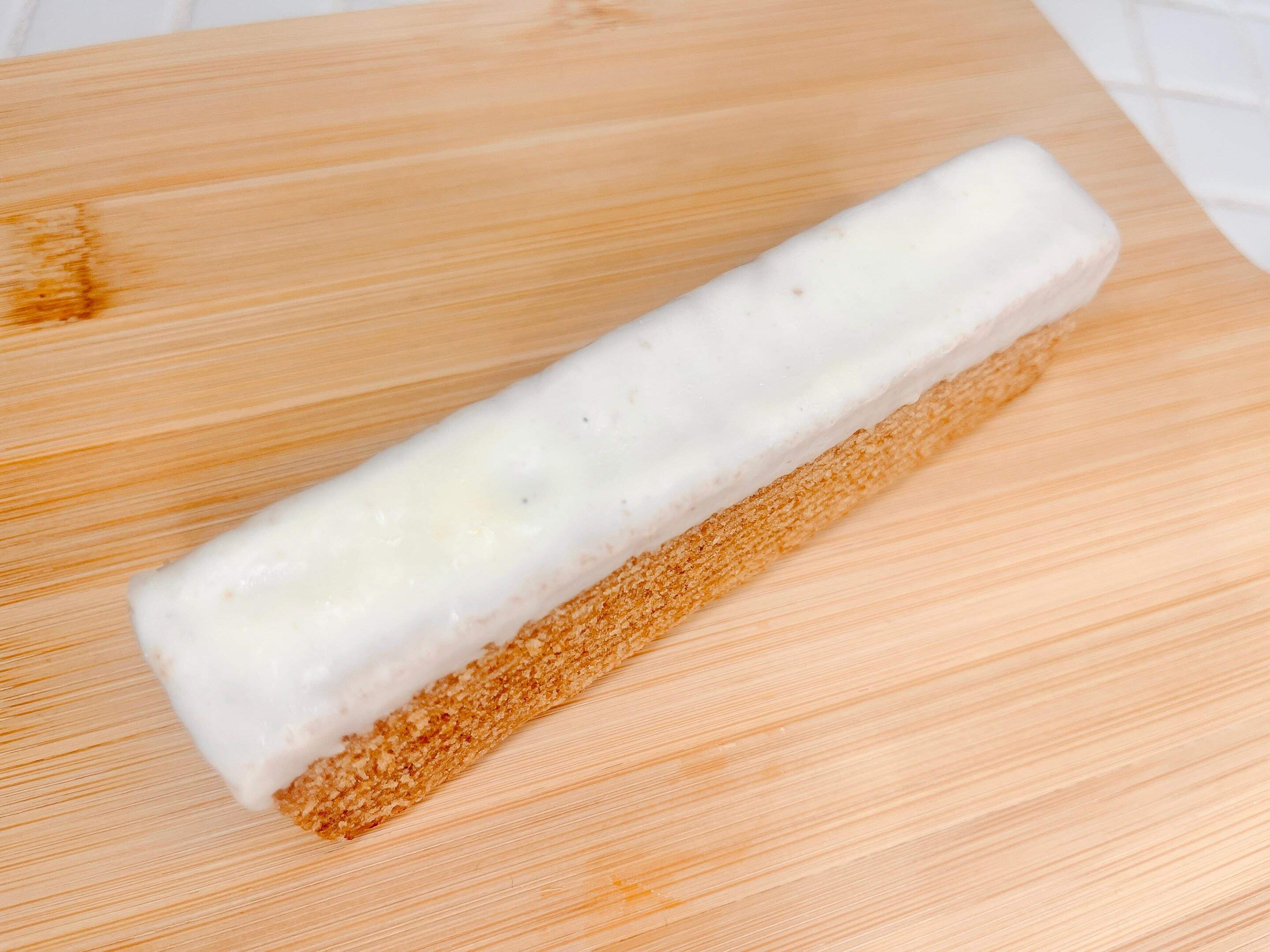 こちらもバウムシリーズ同様、焼きムラや凸凹、変形など、おいしさに関係なくはじかれていたものも活かした商品で、食べやすいスティック型のチーズケーキです。