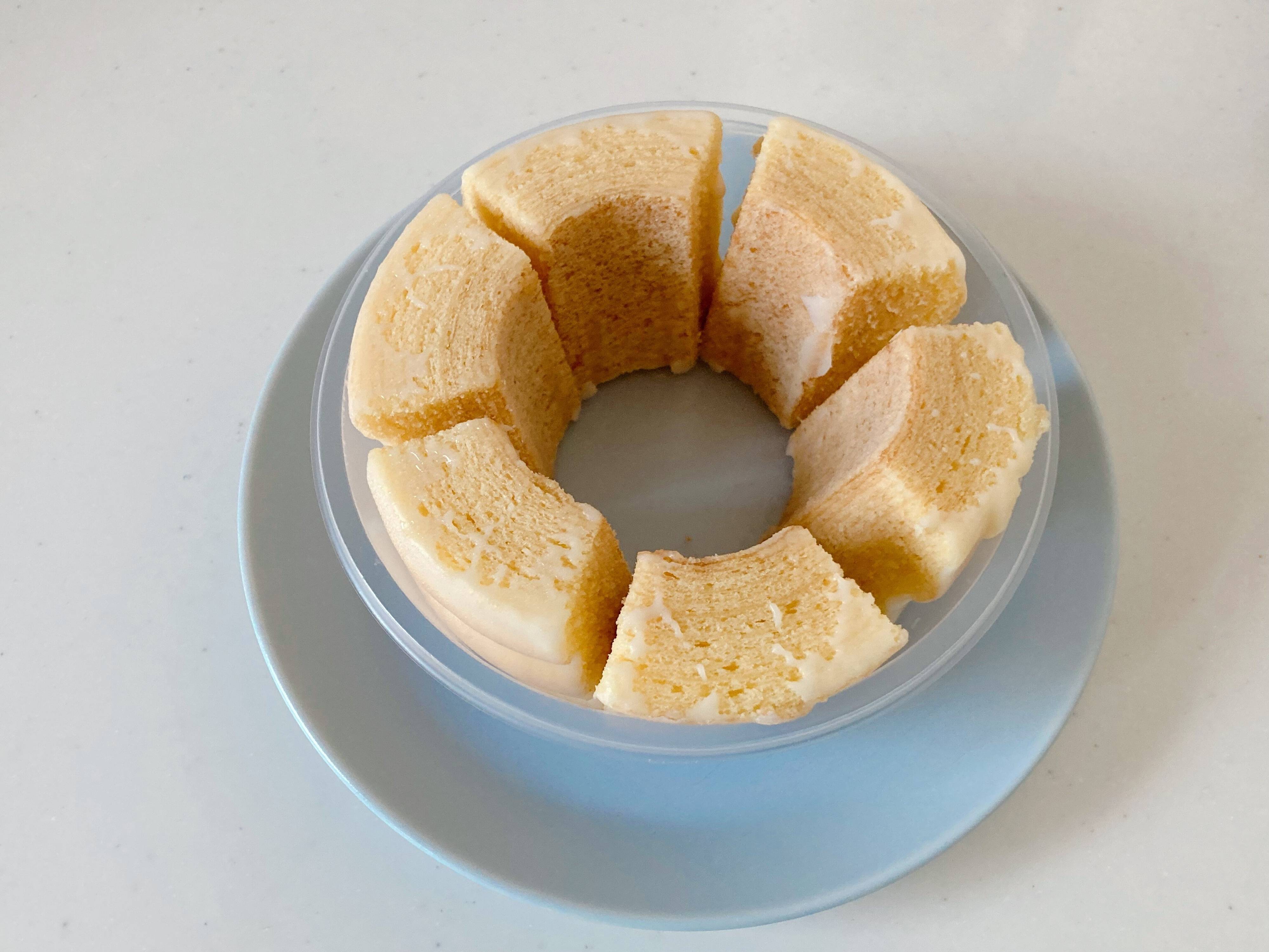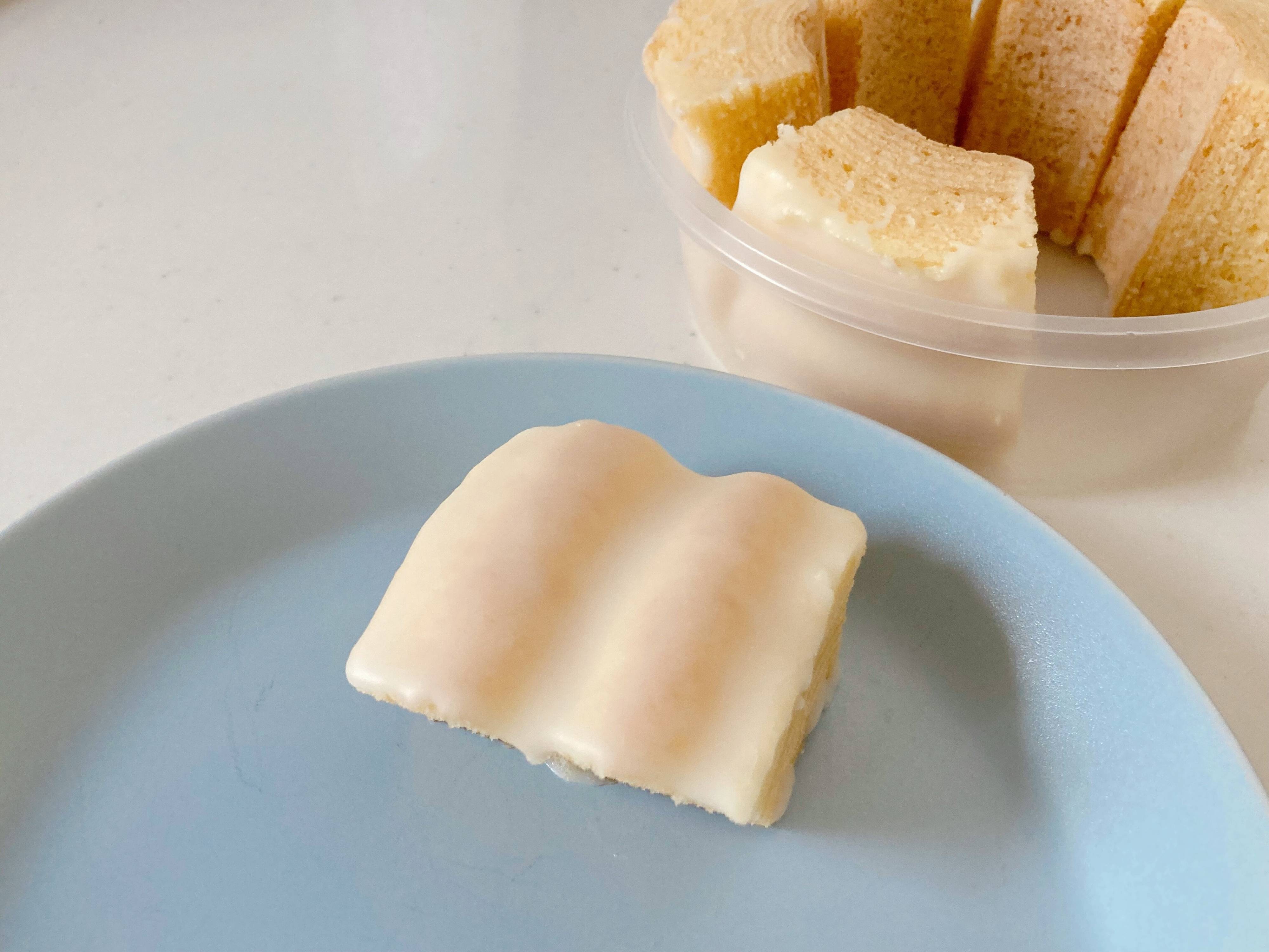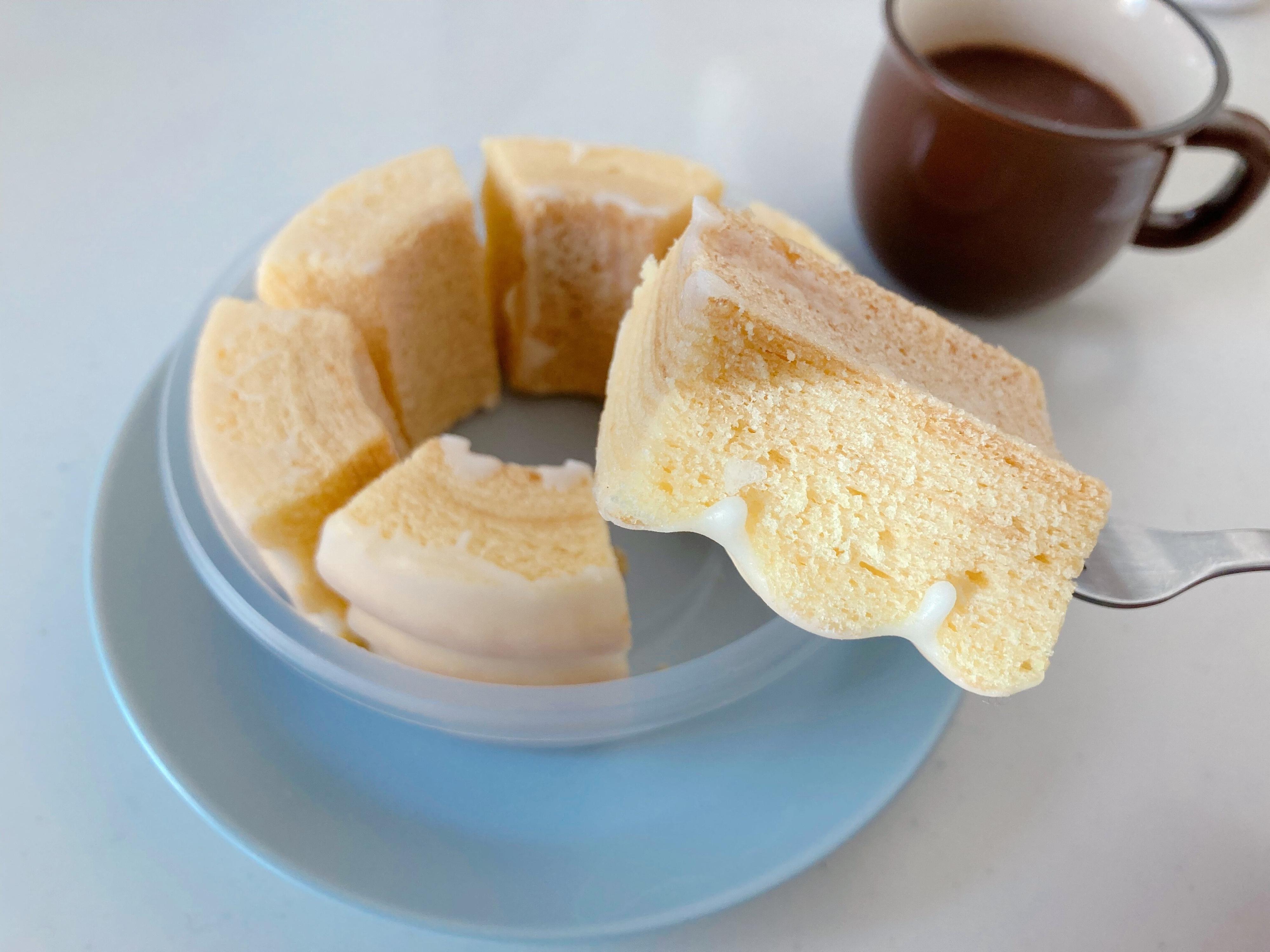 冷蔵庫から出してひんやりしたバウムクーヘン。名前の通りしっとりふわふわとした生地と、口どけの良いグレーズが少しシャリっとする絶妙な食感が楽しめます。