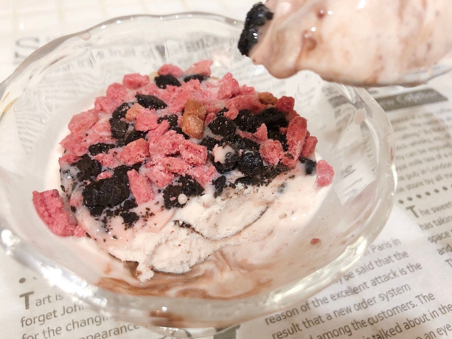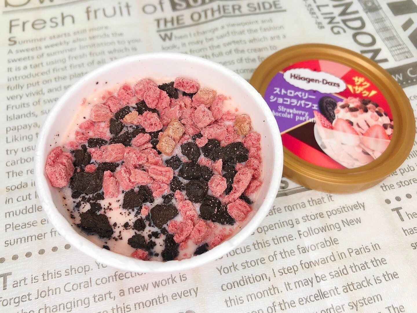 フィルムを開けるとザクザクのベリーとチョコの2種のクッキーがぎっしり詰まっていて贅沢感!ハーゲンダッツは冷凍庫から出してすぐはまだ硬いので、少し待ってカップが柔らかくなるぐらいが美味しい食べごろです。
