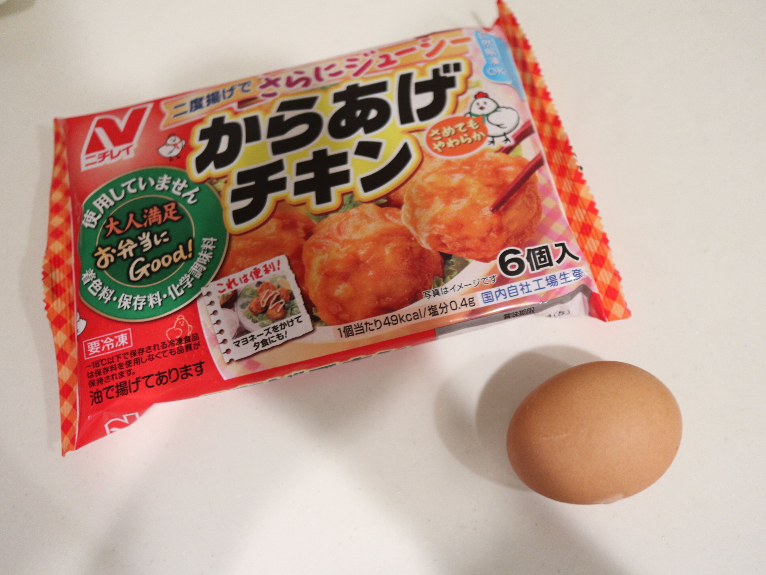 ・冷凍からあげチキン  3個(自然解凍し、細かく切っておく)