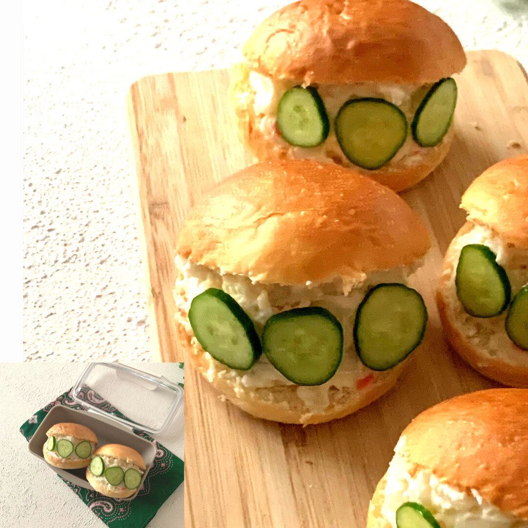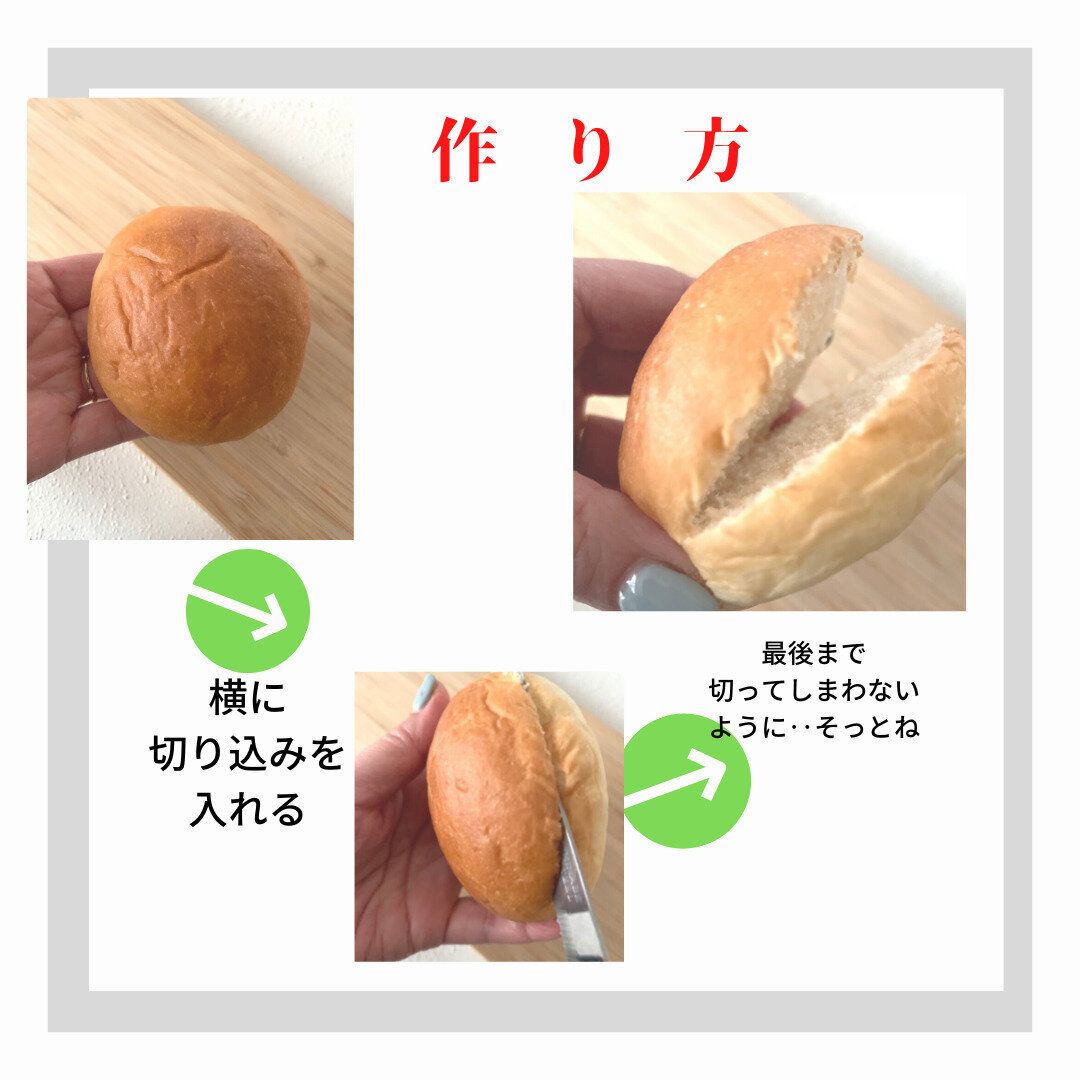 丸いパンは、タカキベーカリー牛乳ロールを使用しました。