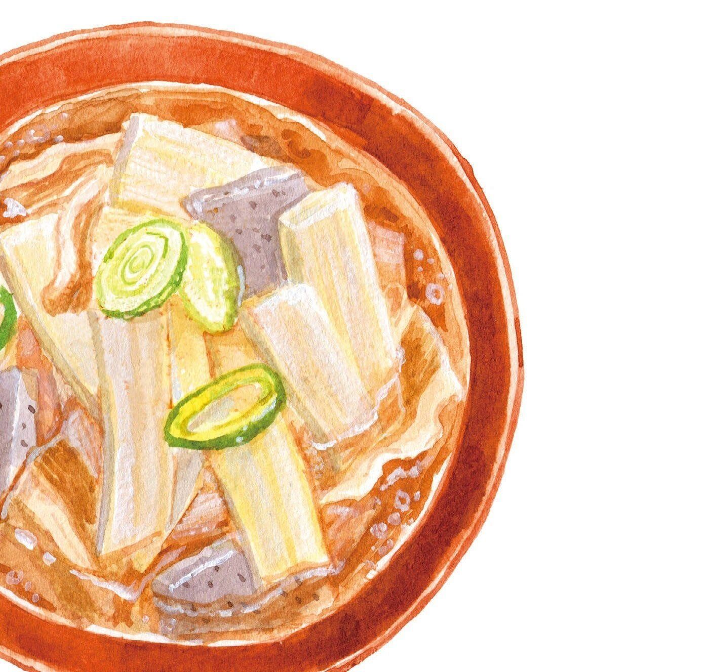 (3)全体に油が回ったら[A]を加え、煮立ったらアクを除いてふたをして弱めの中火で4~5分煮る。みそを溶き入れて長ねぎを加え、ひと煮立ちしたら火を止める。