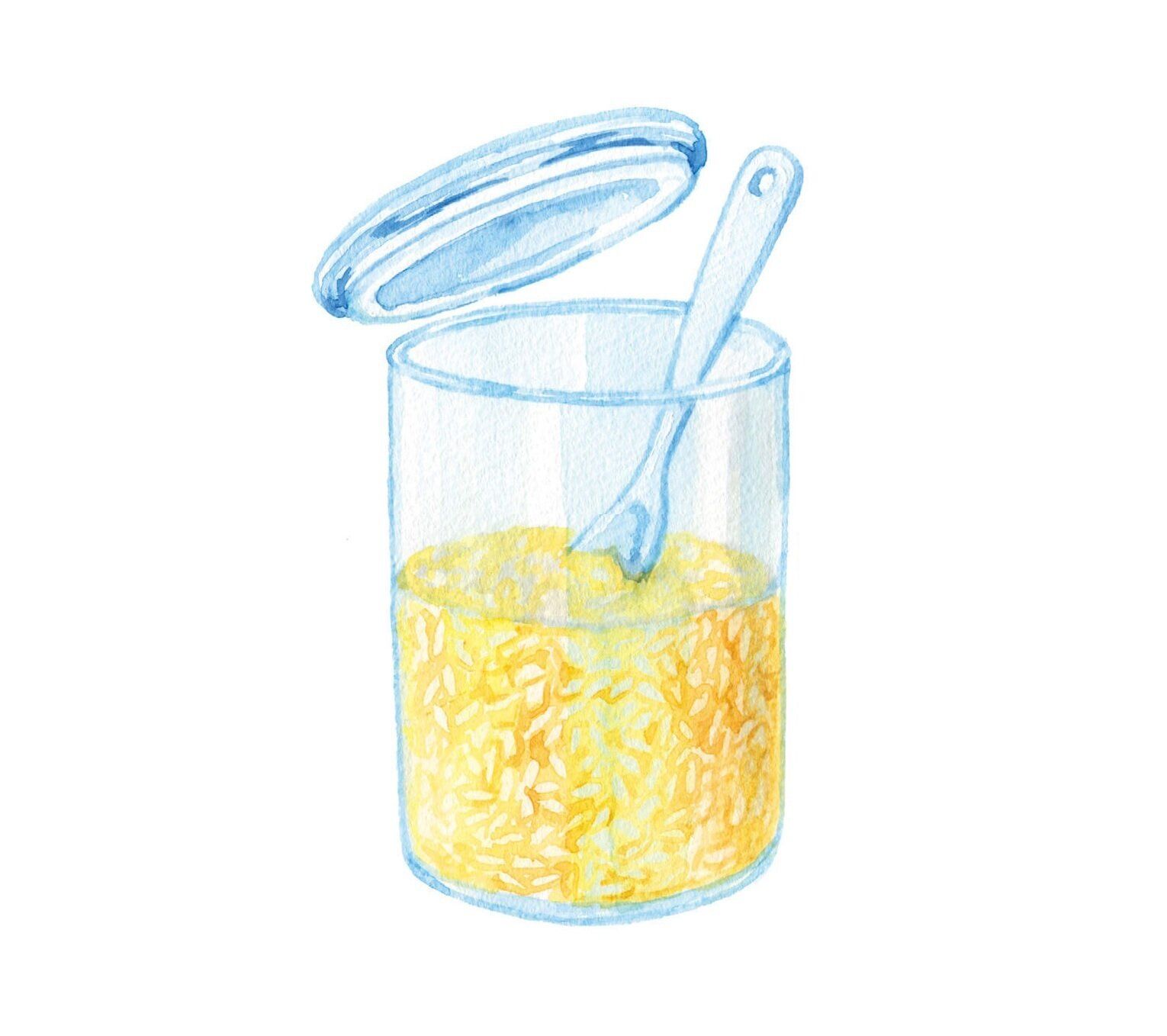 (2)(1)を清潔な容器に入れ、水を注いで軽く混ぜて、ゆるくふたをする。