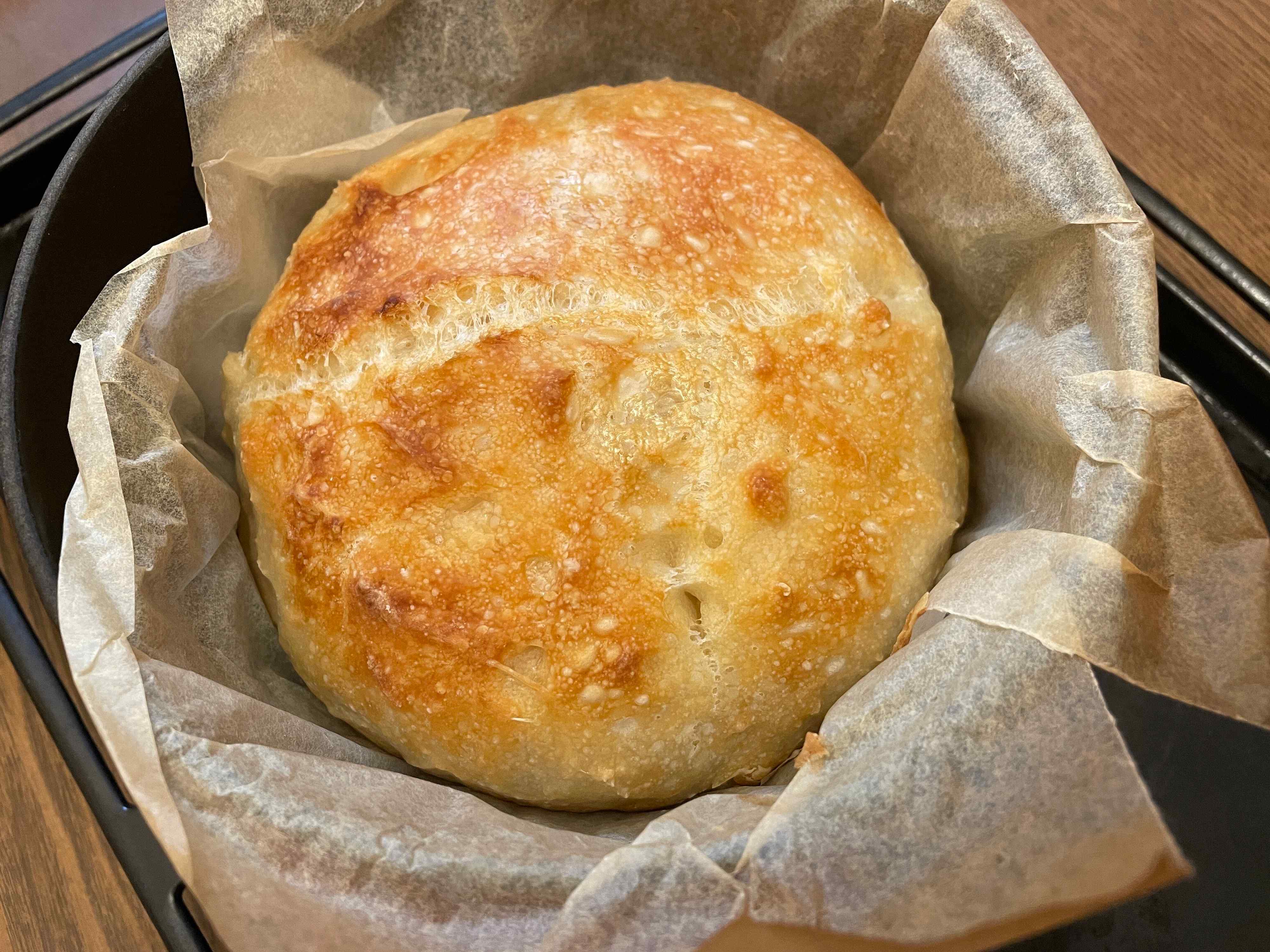 発酵も、面倒な温度調節などもなく室内に置いておくだけ。少し時間はかかりますが、おどろくほどに簡単なのに、食べると本格的なハードパンのような味がしますよ。