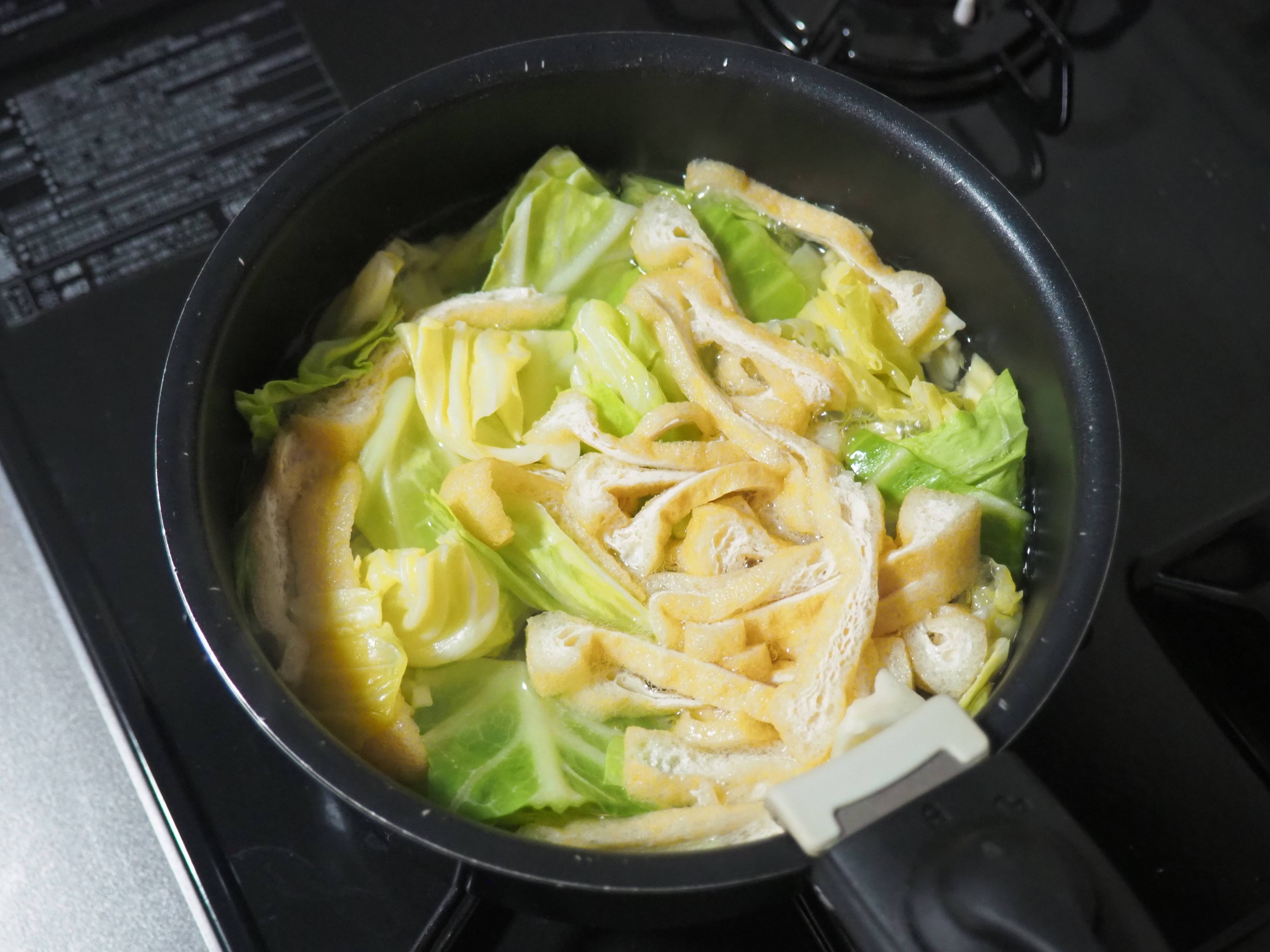 便利なテクニックですが、一度冷凍したキャベツを中途半端に解凍すると、食感が変わってしまうようで…それならば、汁物や鍋に使えばいい!