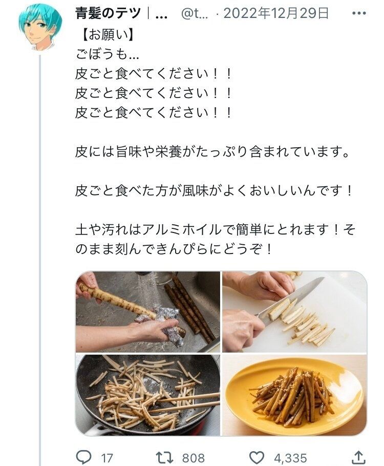 今回も頼れる野菜のプロ、青髪のテツさんの投稿を参考にしました。八百屋歴10年というキャリアの持ち主で、野菜に関するお役立ち情報を提供してくれることで知られています。