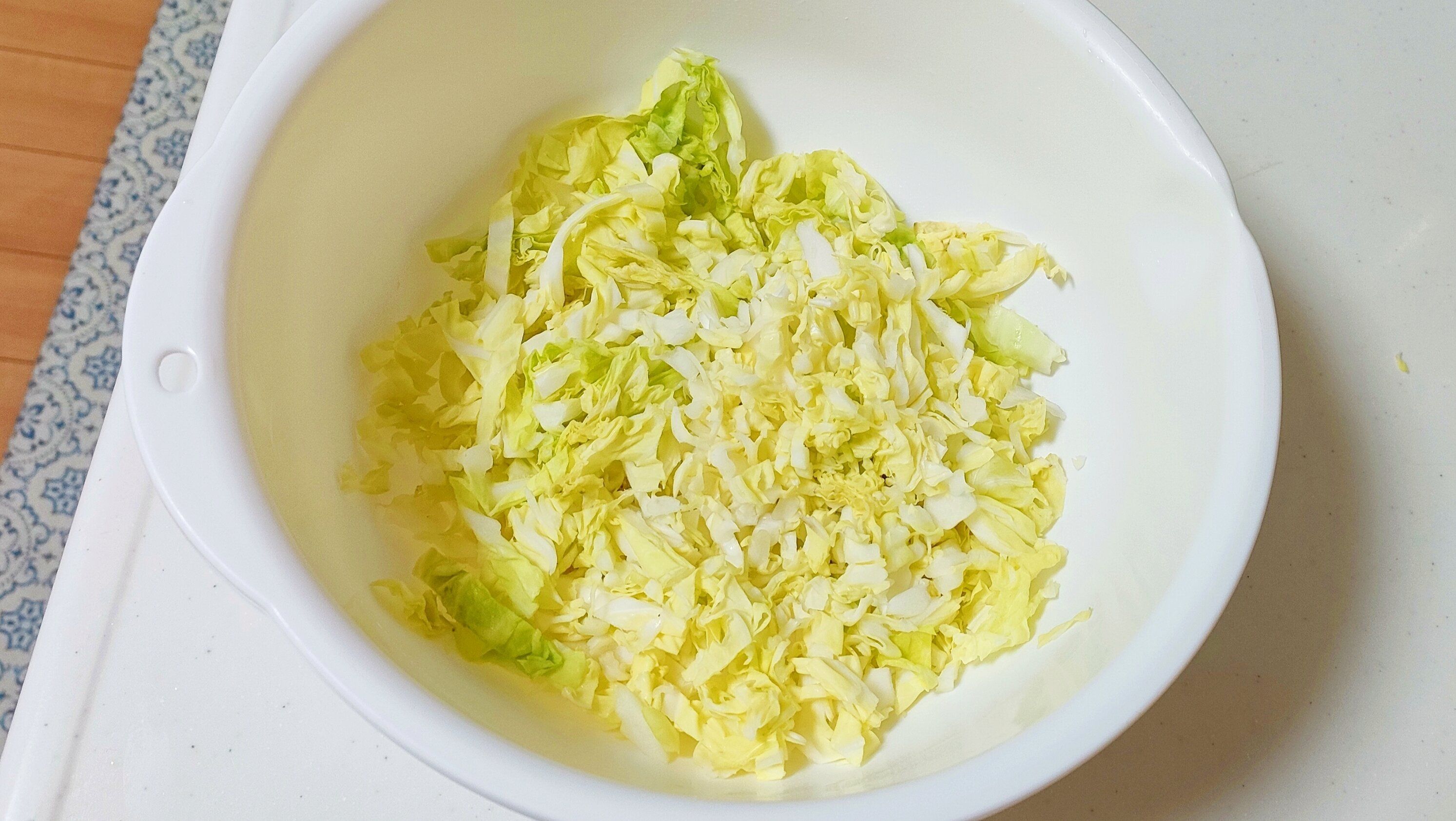 1、キャベツを千切りにする(細すぎなくてもOK)