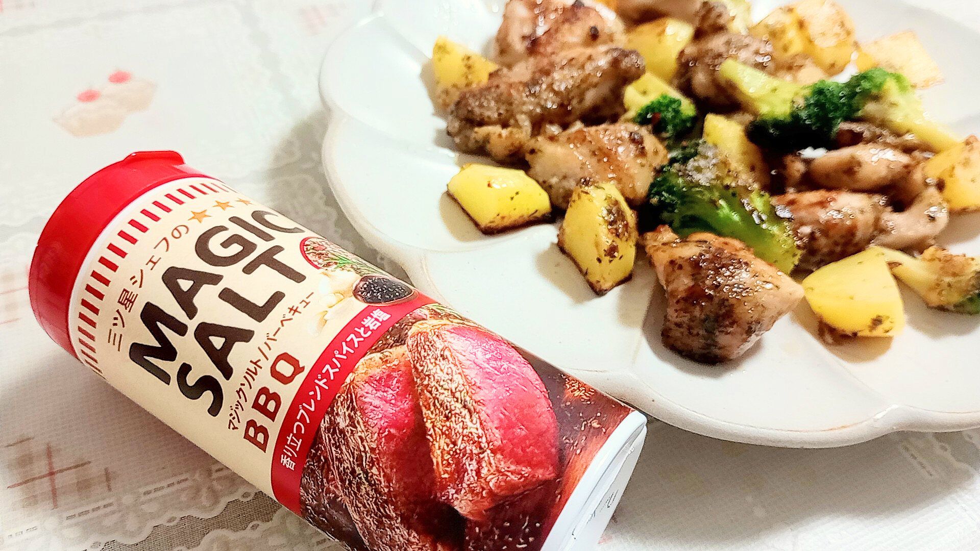 マジックソルト「バーベキュー」を手に入れたら、ぜひ最初に試してもらいたいのが、肉料理。豚肉、牛肉、鶏肉、なんでもOKです。とにかく肉との相性がよいので、まずはほかの調味料を加えずに調理してみてください。