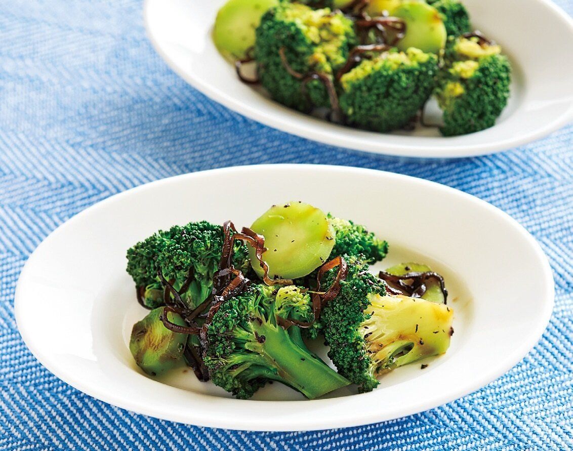 ブロッコリーは小房に分け、茎は皮を厚めにむいて厚さ5mmの輪切りにする。たっぷりの熱湯に塩少々を入れ、ブロッコリーを入れて約3分ゆでる。ざるに上げ、水けをきる。ボウルにブロッコリーを入れ、ゆかり、塩昆布を加えてあえる。