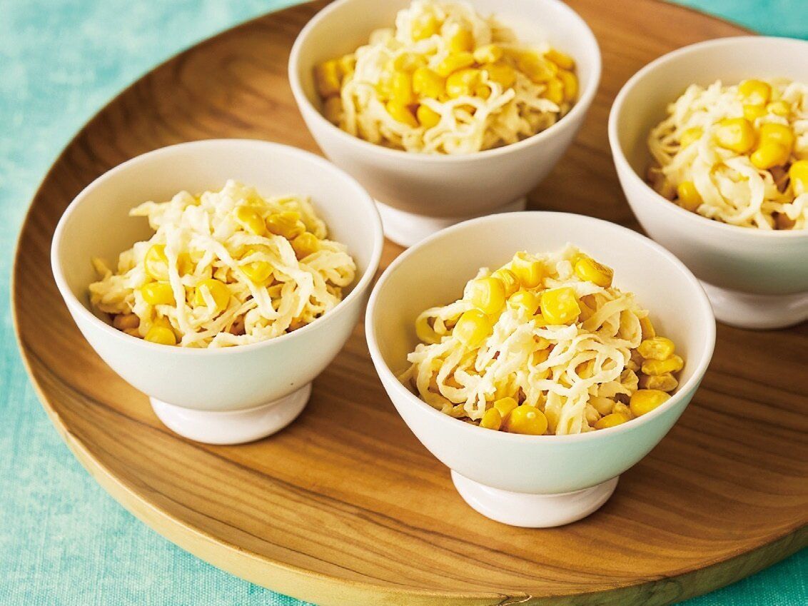 切り干し大根はさっとすすぎ、ボウルに入れて、たっぷりの水に約10分浸してもどし、水けを絞る。[A]のボウルに切り干し大根、コーンを入れて混ぜる。