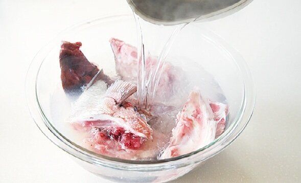 鯛のあらをおいしく食べるには、下処理がポイント。耐熱ボウルに鯛を入れて熱湯をかけ、すぐに流水でぬめりやうろこを洗い落とすと臭みが取れ、口当たりもアップ。