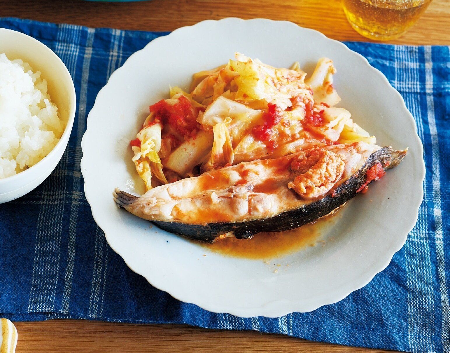 (1)かれいは水けを拭く。大きめのフライパンにサラダ油、[A]を入れて強めの中火で炒め、香りが立ったらキャベツを加えて炒める。キャベツに油が回ったら火を止め、かれいを並べ入れる。