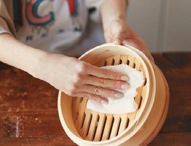 使った後は、固く絞ったふきんで拭けばOK。汚れが気になるときはたわしで優しく洗い、どうしても汚れが落ちないときは洗剤で洗い、しっかり流して十分乾燥させます。