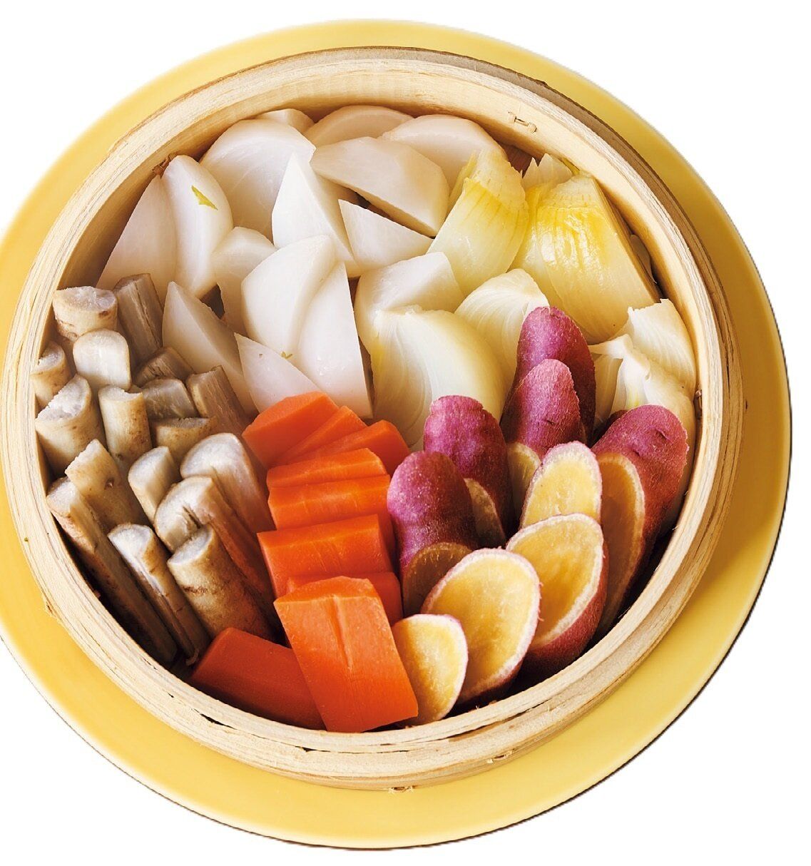 野菜を食べやすく切り、せいろに詰め、ふたをして強めの中火で約15分蒸す。