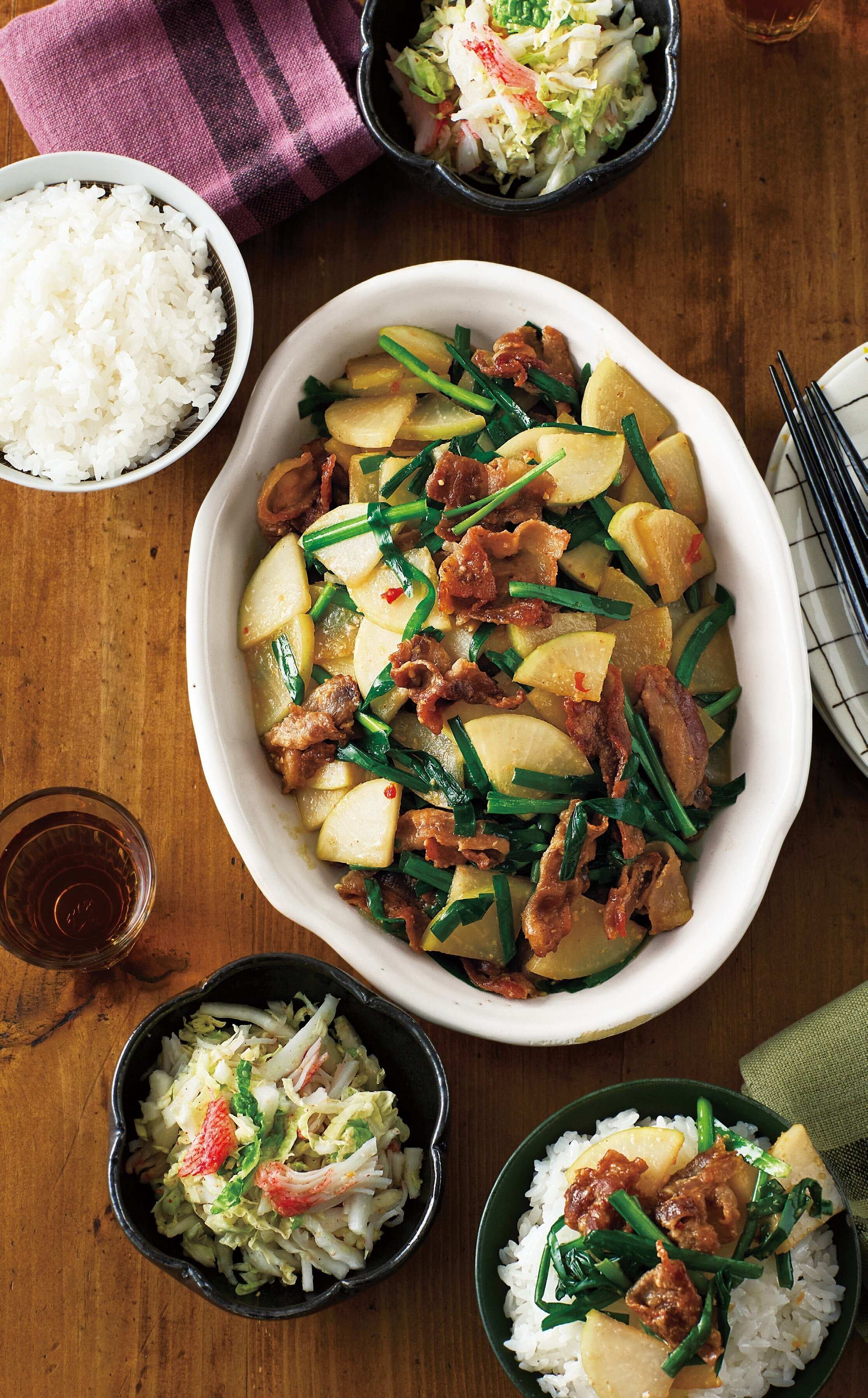 【近藤さん】回鍋肉をキャベツで作るときのイメージで、大根は薄めに切って、シャキシャキした食感が残るよう、最後にさっと炒め合わせるだけでできます。大根は炒めもののときは、皮つきのまま使うと、食感や甘みが楽しめます。