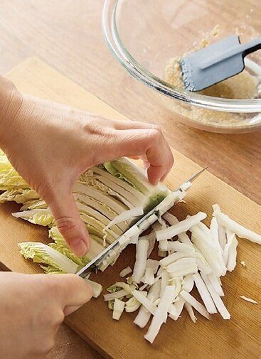 (1)白菜を切る