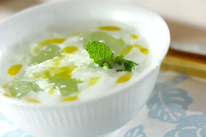ジャジュクはトルコ料理の前菜の一つです。キュウリをたっぷり使ったヨーグルトの冷製スープで、爽やかな味わいなのでこってり系の料理とよく合います。体もひんやりし、暑い日におすすめです。