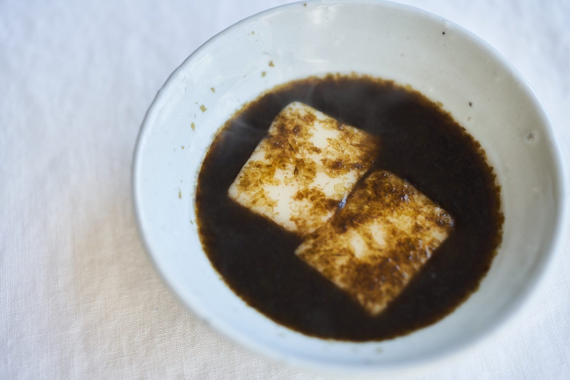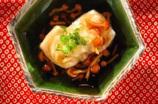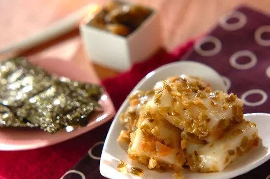 カリっと揚げ焼きしたお餅を、なめこたっぷりのお出汁と大根おろしでさっぱりいただくアレンジです。晩御飯の副菜としても、お酒のつまみにもピッタリです。