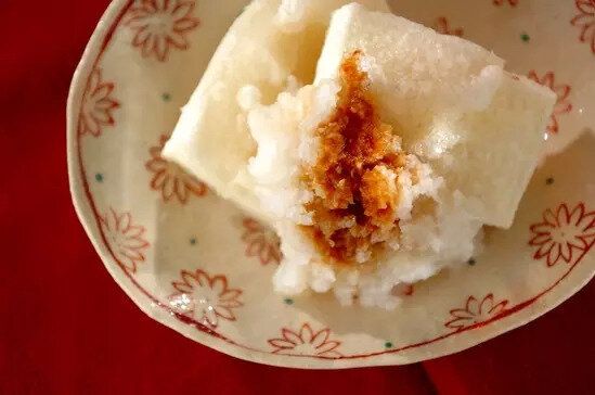焼いたお餅を竹串に刺し、砂糖、みりん、醤油、水を煮詰めたタレに絡めたアレンジ。お家でも簡単にみたらし団子が楽しめます。柔らかいお餅に甘辛いタレがよく絡んで、ついつい食べ過ぎてしまいそうです。