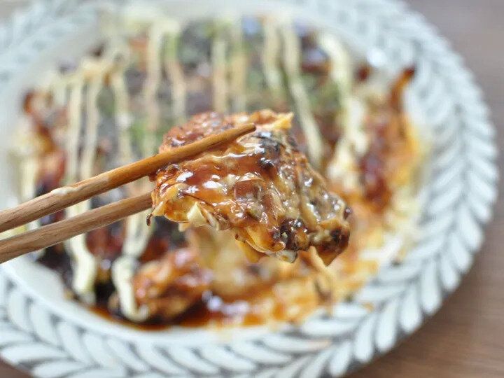 粉不要でできるもちもちのお好み焼きです。粉を測ったり混ぜたりする手間がないので、手軽にお好み焼きが楽しめます。小麦アレルギーの方や、グルテンフリーの食生活をされている方にもおススメです!野菜がたくさん摂れるのもうれしいポイント。