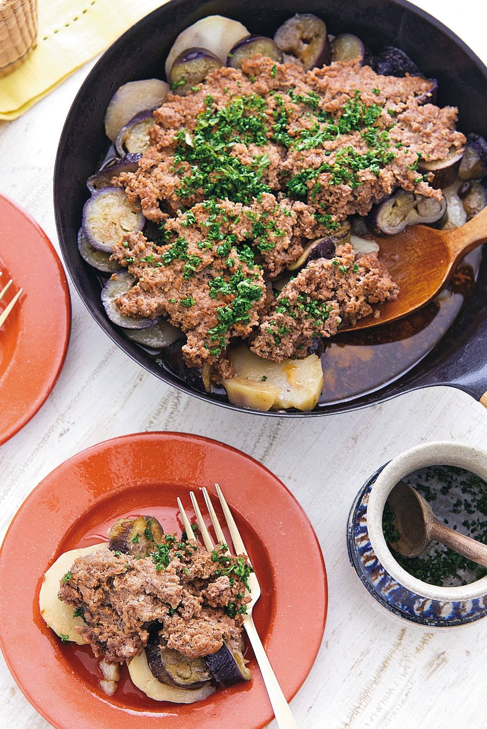 ひき肉となすとじゃがいもの重ね焼き