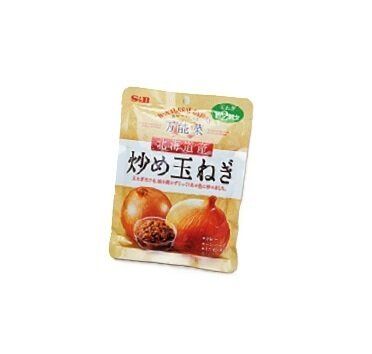 (1)鍋に炒め玉ねぎ2袋(360g)、顆粒コンソメスープの素2袋(9g)、塩小さじ1/4、水600mlを入れて温め、耐熱の器に入れる。