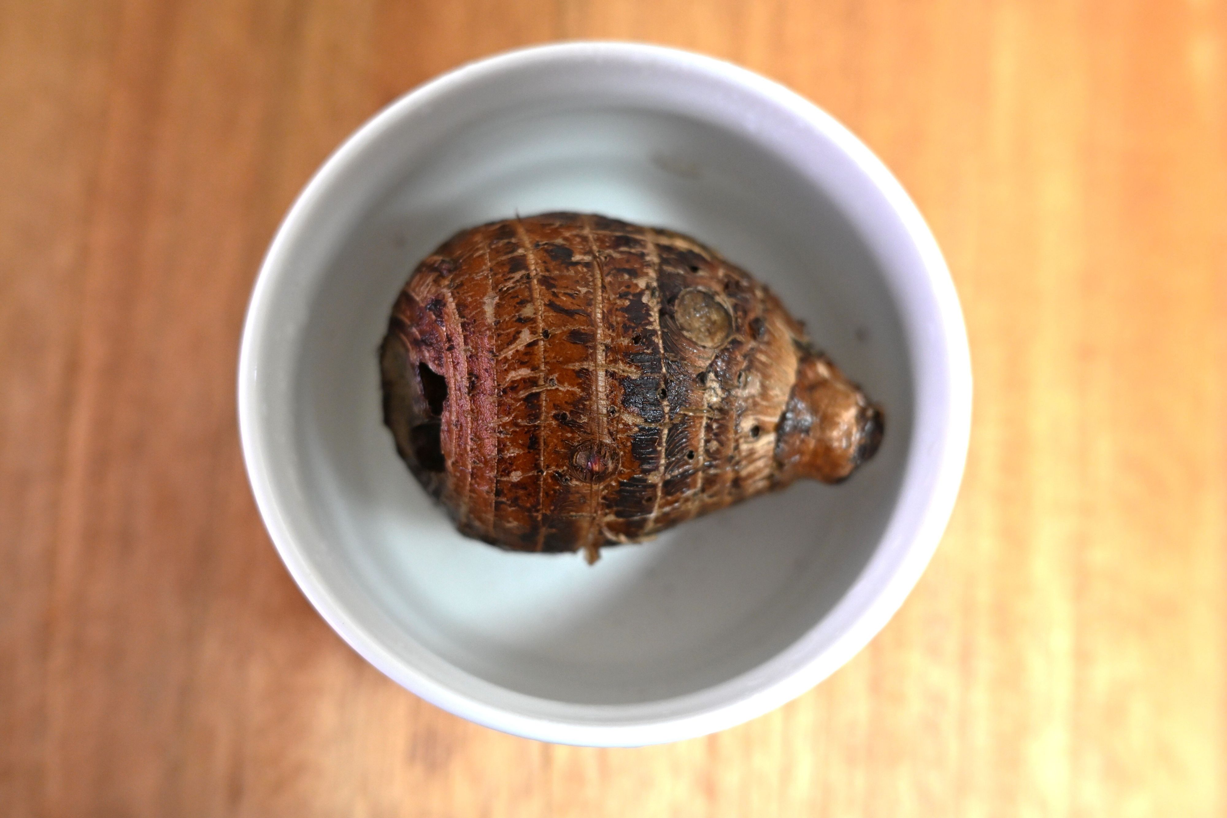 触れることができるほど、冷めてから手でむいてみると、驚くほどつるんと簡単にむけました。