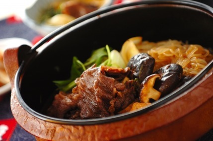 牛肉、ねぎ、しいたけ、焼き豆腐、しらたきなどを使い、甘辛く味付けした割り下を使って煮込む鍋レシピです。