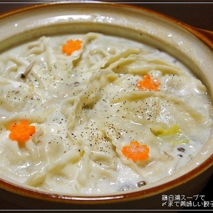 市販の餃子をたっぷりと白湯スープで煮込んだ、手軽に楽しめる鍋レシピです。