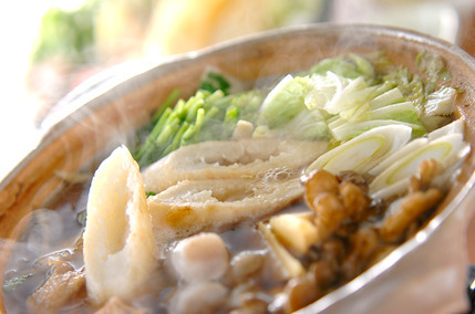 鶏がらだしをベースにしょうゆやみりんで味を調え、たっぷりの野菜やきのこと一緒にどうぞ。