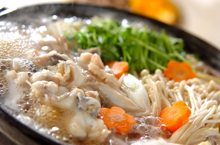 豚のモツ(ホルモン)をキャベツ、ニラなどと一緒に、にんにくやしょうがを効かせたスープで煮込む福岡県の郷土料理です。