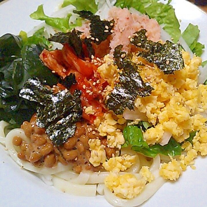 うどんも含めて全部で10品目の、具だくさんでカラフルな一品。