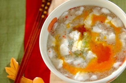 このレシピでは、かつおなどの和だしでなく、鶏がらスープの素を使って中華風に仕上げるのがポイント。卵白を利用してふんわりとしたあんかけをかけて食べる、おしゃれな一品です。