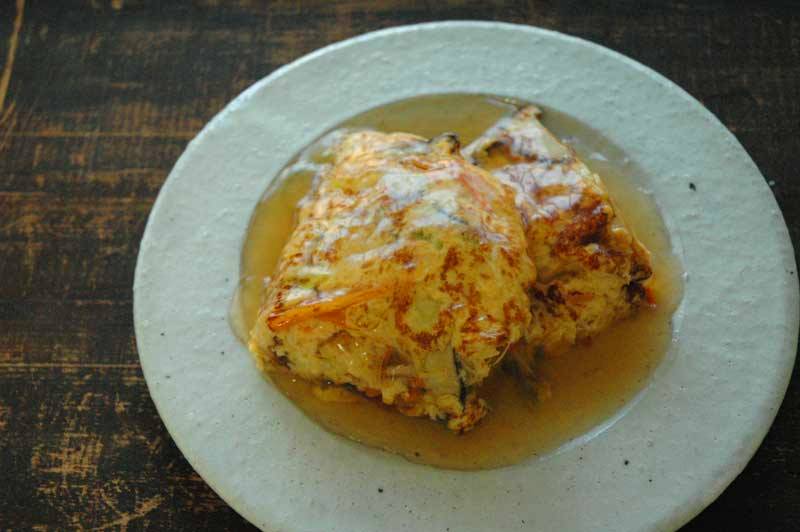 季節の野菜をたっぷり焼き込んだ、和風だしのあんかけとともにいただく、和風かに玉のレシピです。