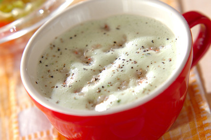 バジル、玉ねぎ、ヨーグルト、牛乳などをミキサーで滑らかにしてつくる冷製スープです。