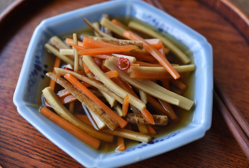 ごぼうとにんじんを使う料理といえば、炒めて甘辛く味付けするきんぴらが定番ですが、南蛮漬けにするという方法もありますよ。シャキシャキとした歯ごたえと、だしと酢が効いた合わせ調味料(南蛮酢)で、さっぱりと食べることができる一品です。