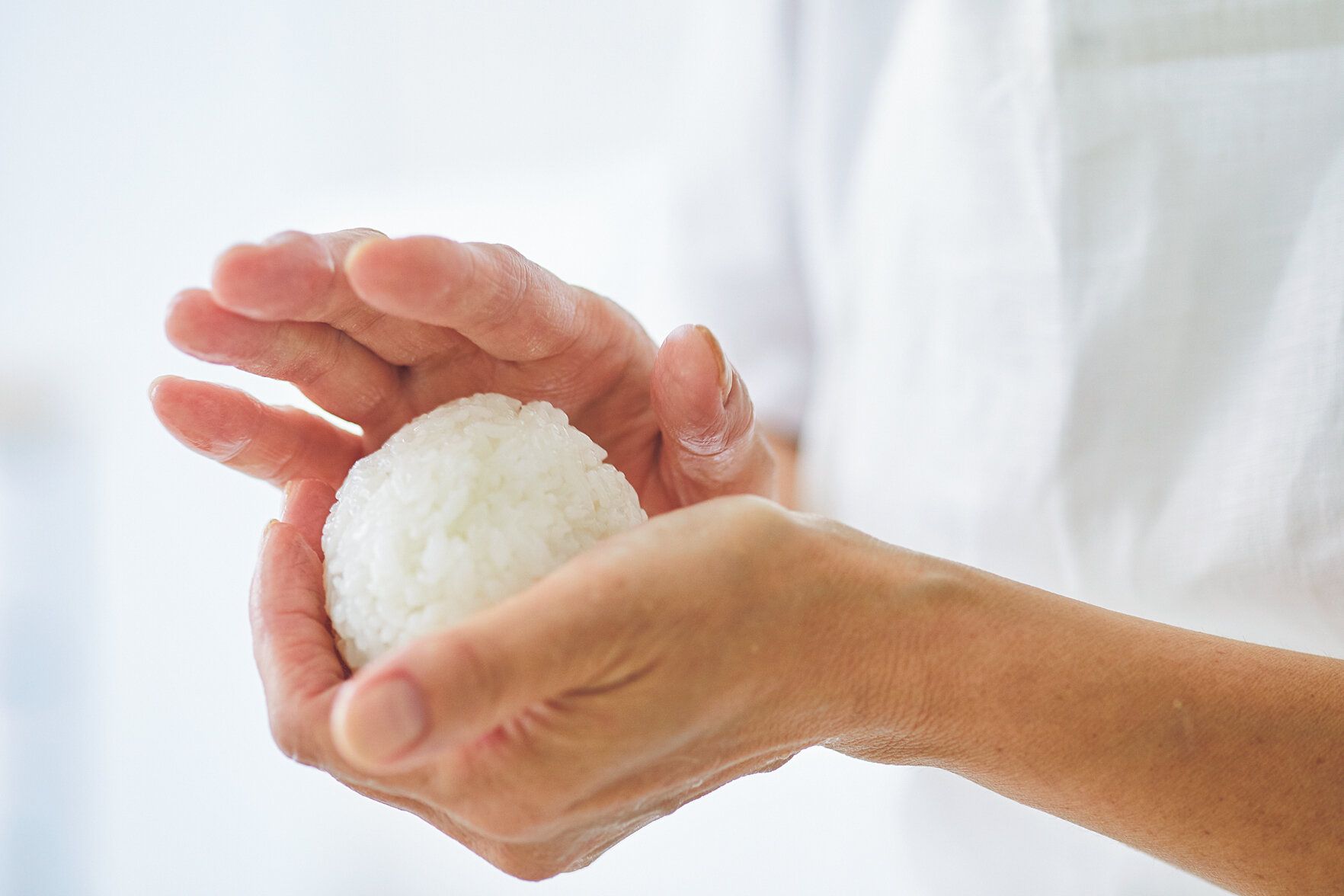 手のひらで生の卵をやさしく転がすように、米粒をつぶさずにご飯をまとめると食べた時にほろっとくずれる。