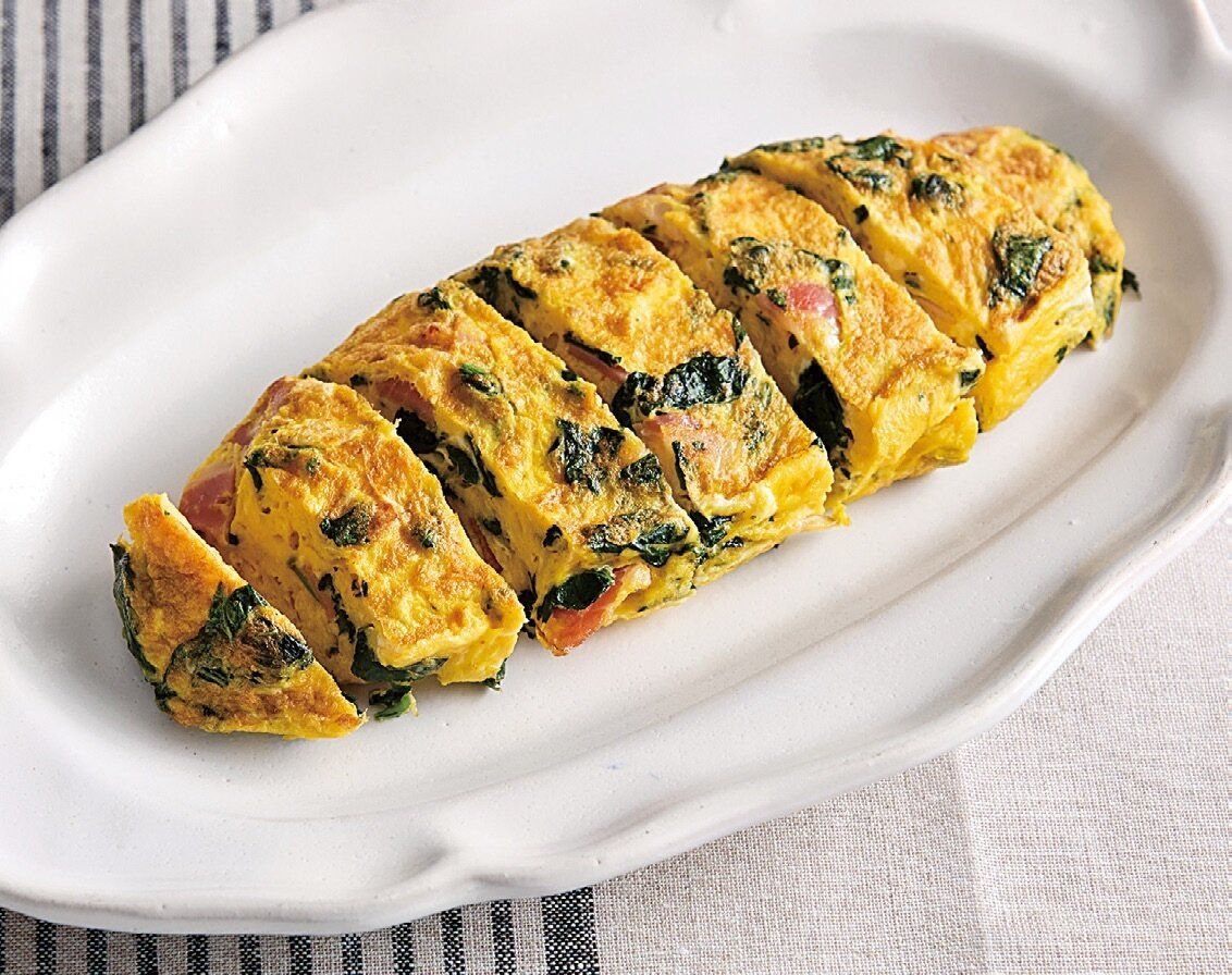 モロヘイヤとベーコンのオムレツ