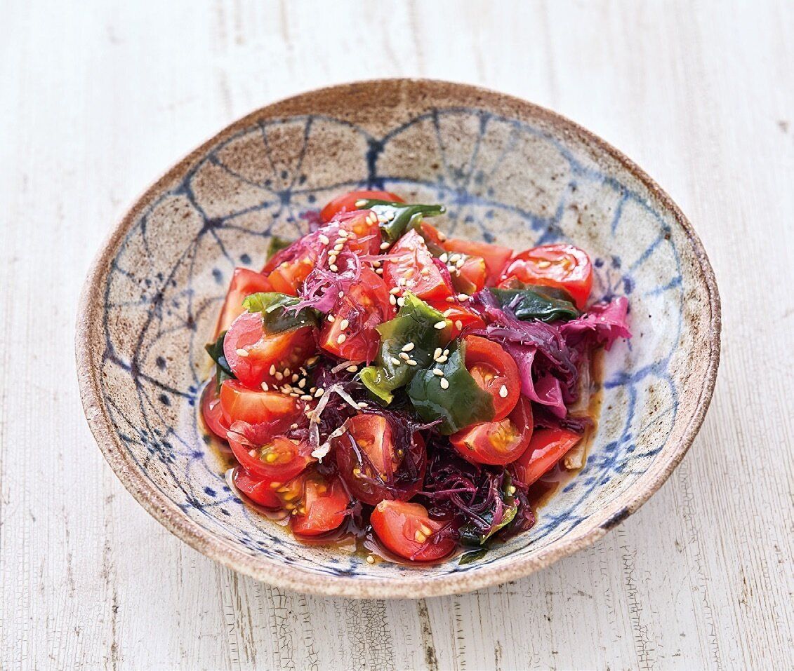 海草ミックスはさっと洗い、水に10分浸してもどし、水けをしっかりと絞る。ミニトマトは縦4等分に切る。ボウルにミニトマトと海草を入れ、[A]を加えてあえる。