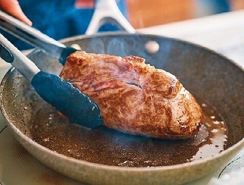香ばしい焼き色をつけておくと、オーブンで焼いても肉汁が抜けずジューシーに焼き上がり、おいしさアップ。