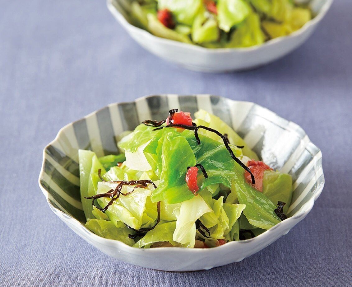 蒸しキャベツの梅昆布あえ