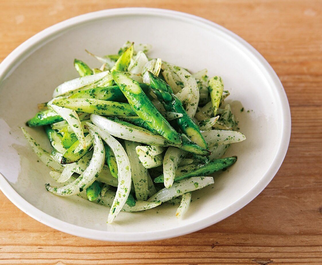 アスパラと新玉ねぎの青のりバター炒め