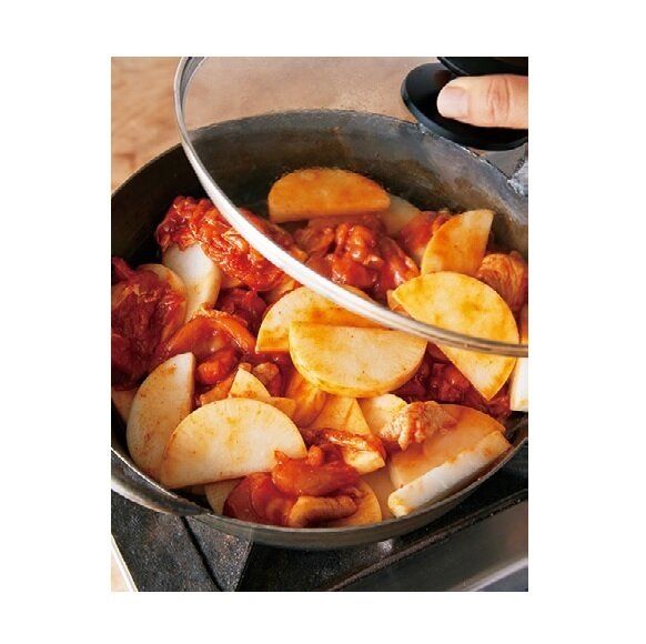 近藤さん 大根は皮の近くに甘みもうまみもあるので皮つきのまま使います。下味をつけた鶏肉に混ぜて蒸し焼きにしてから、水分をとばしながら火を通すだけ。鍋でなく、フライパンで作ることもできますよ。