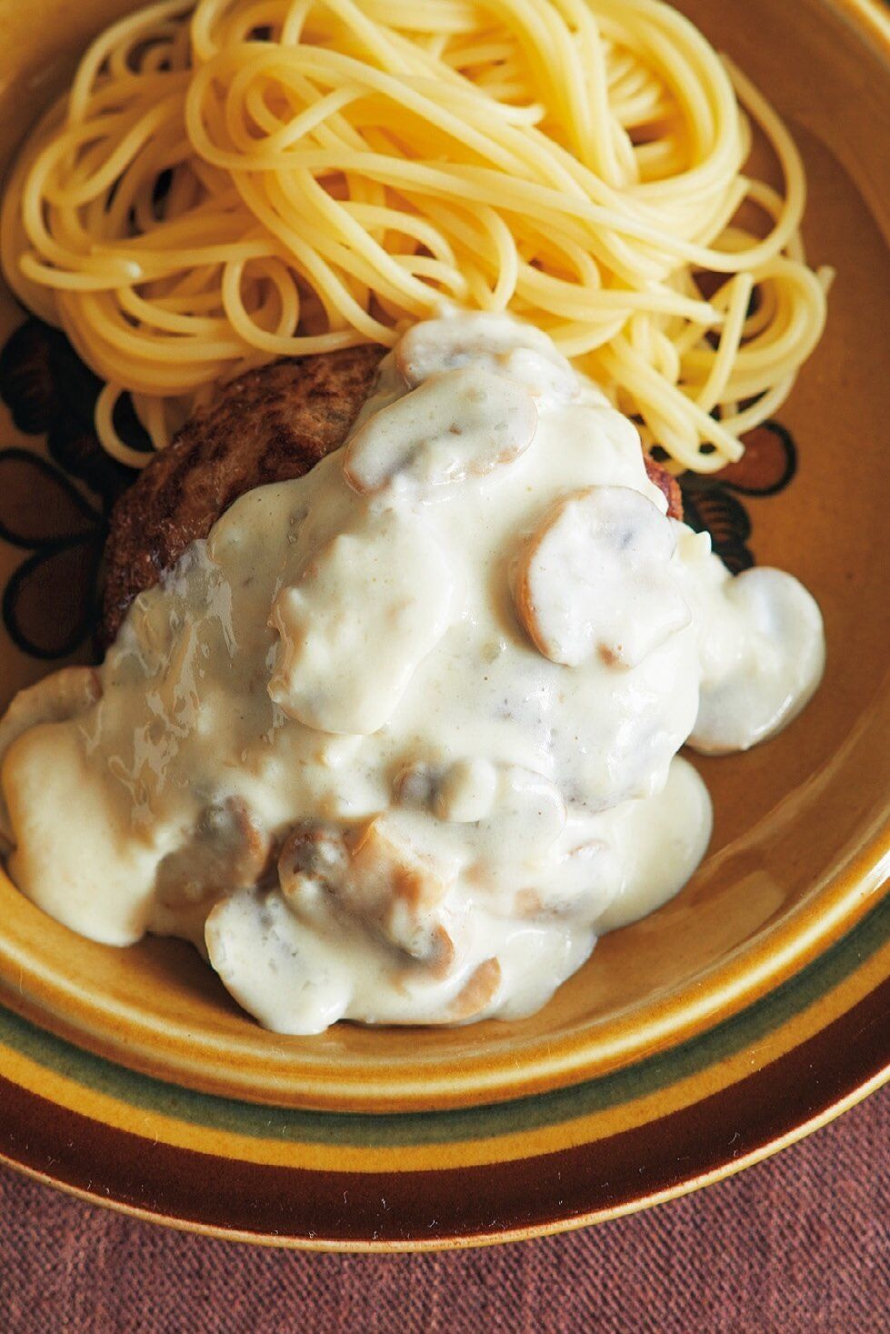 〈合いびき肉で〉きのこクリームソースハンバーグ
