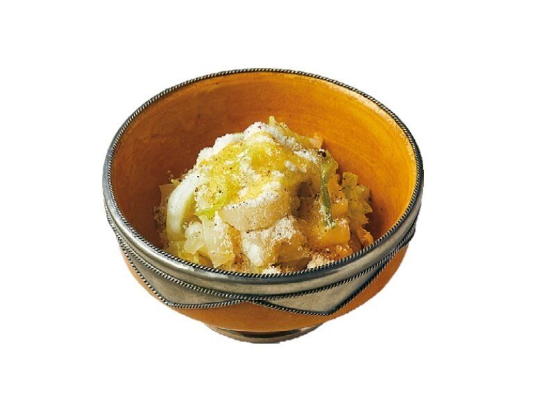 塩白菜を器に盛り、粉チーズ、オリーブ油をかけ、こしょう少々をふる。