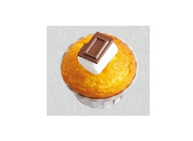 焼き上がったケーキにマシュマロ、板チョコの順にのせて180度で1分焼く。