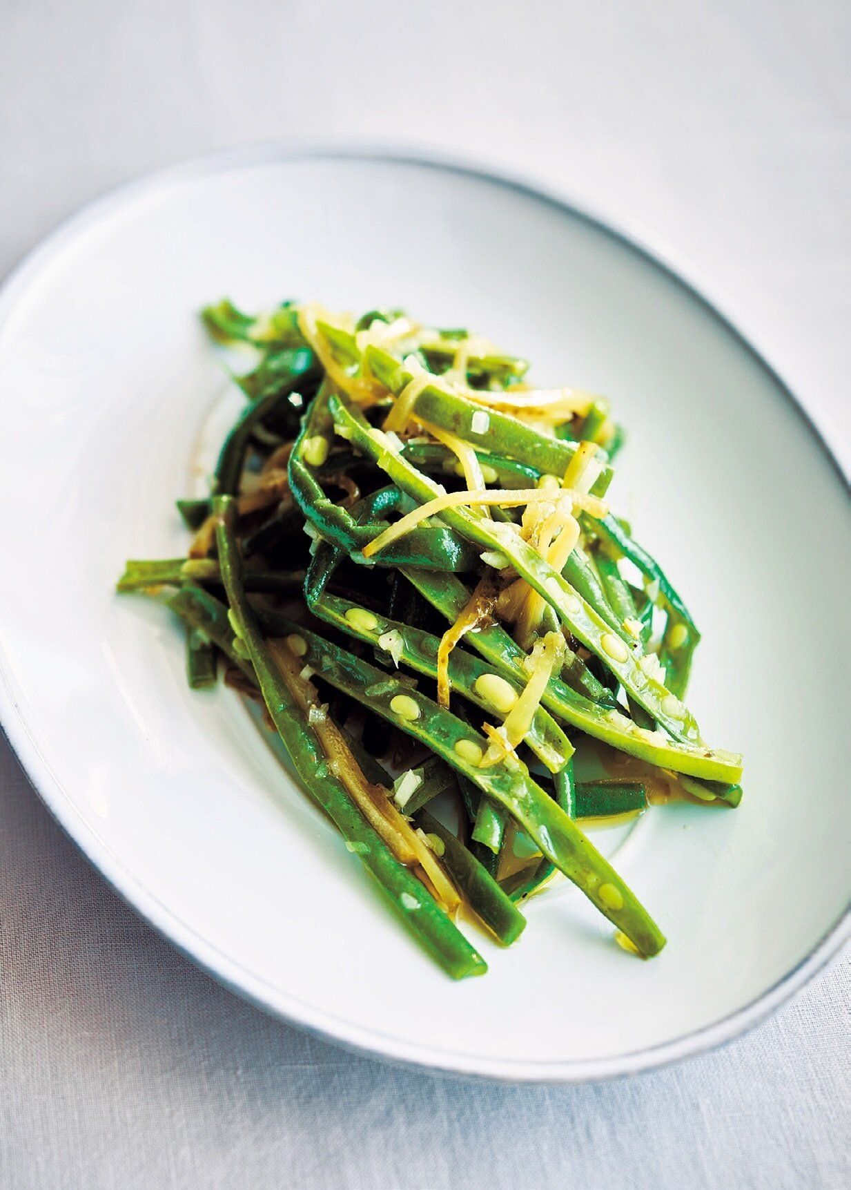 さやいんげんは長いまま開いてリボン状に。味しみと食感がよくなり、おいしさ倍増。